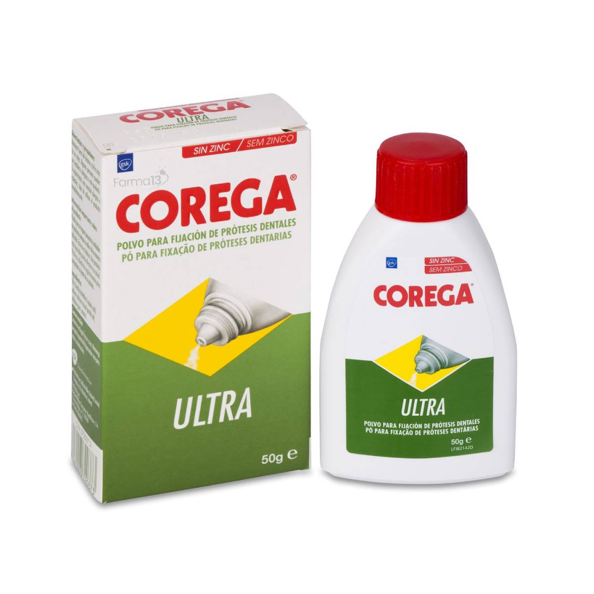 Corega Ultra Polvo. Fijación durante todo el día. Formato en polvo de fácil aplicación.Sin colores artificiales. Sin sabores artificiales. Su fácil aplicación permite utilizar la cantidad justa de fijador para sentirse cómodo y con total confianza.