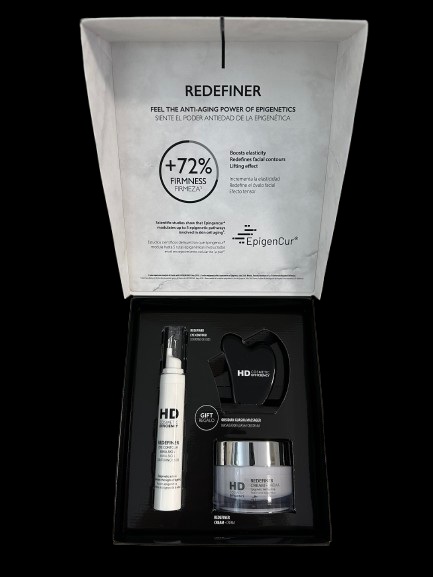 HD REDEFINER facial: crema con textura ligera reafirmante con acción epigenética que revierte los signos de la edad sobre la piel. Define el óvalo facial y alisa la piel, recuperando su suavidad, elasticidad y firmeza.