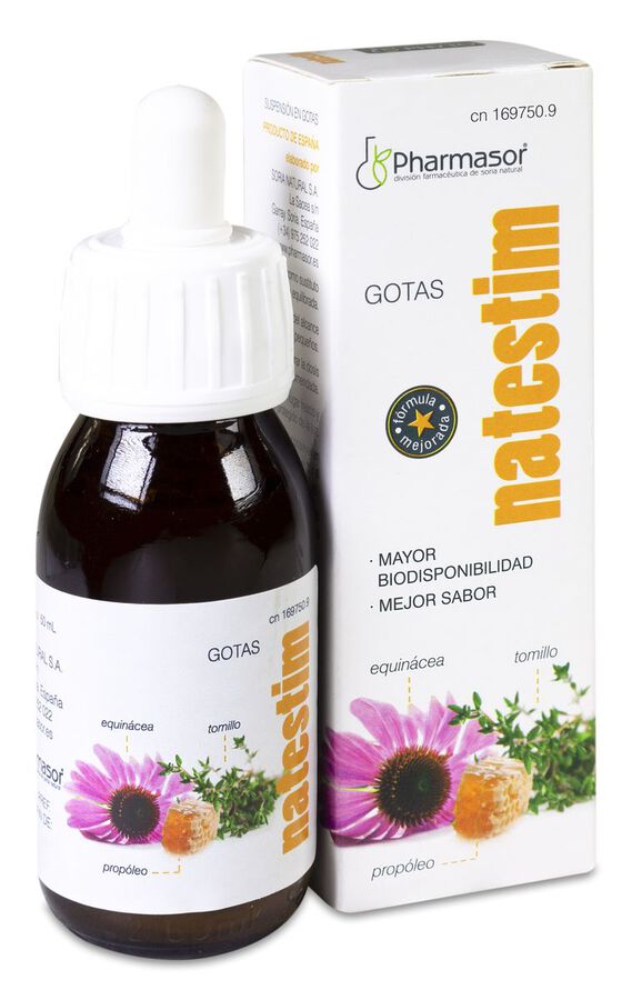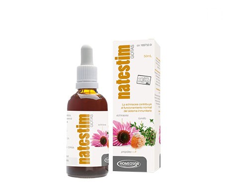 · Natestim Gotas está formulado por extractos de equinácea, propóleo y aceite esencial de tomillo en agua glicerinada, con propiedades que estimulan las fuerzas defensivas del organismo contra agentes agresivos no específicos, contribuyendo así a la eliminación de las infecciones.